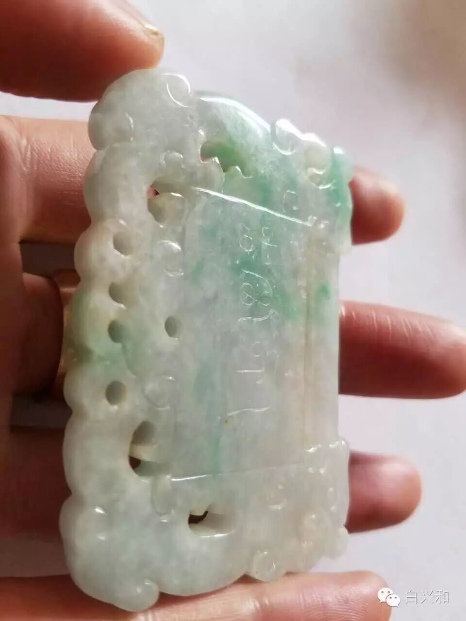 【序号】33-18号 【名称】连年有余和田玉牌 【年代】现代 【材质】和田山料 【尺寸】长73,宽38,厚8mm。 【描述】和田山料连年有余玉牌,玉质柔润,刻工精美,边有小石纹,佩戴送人不错,品像如图,升值空间大,值得收藏的品种。包真,放心拍。 【起拍】无底价。 【估价】1500元以上。 【佣金】买卖双方各3%,卖家包邮。