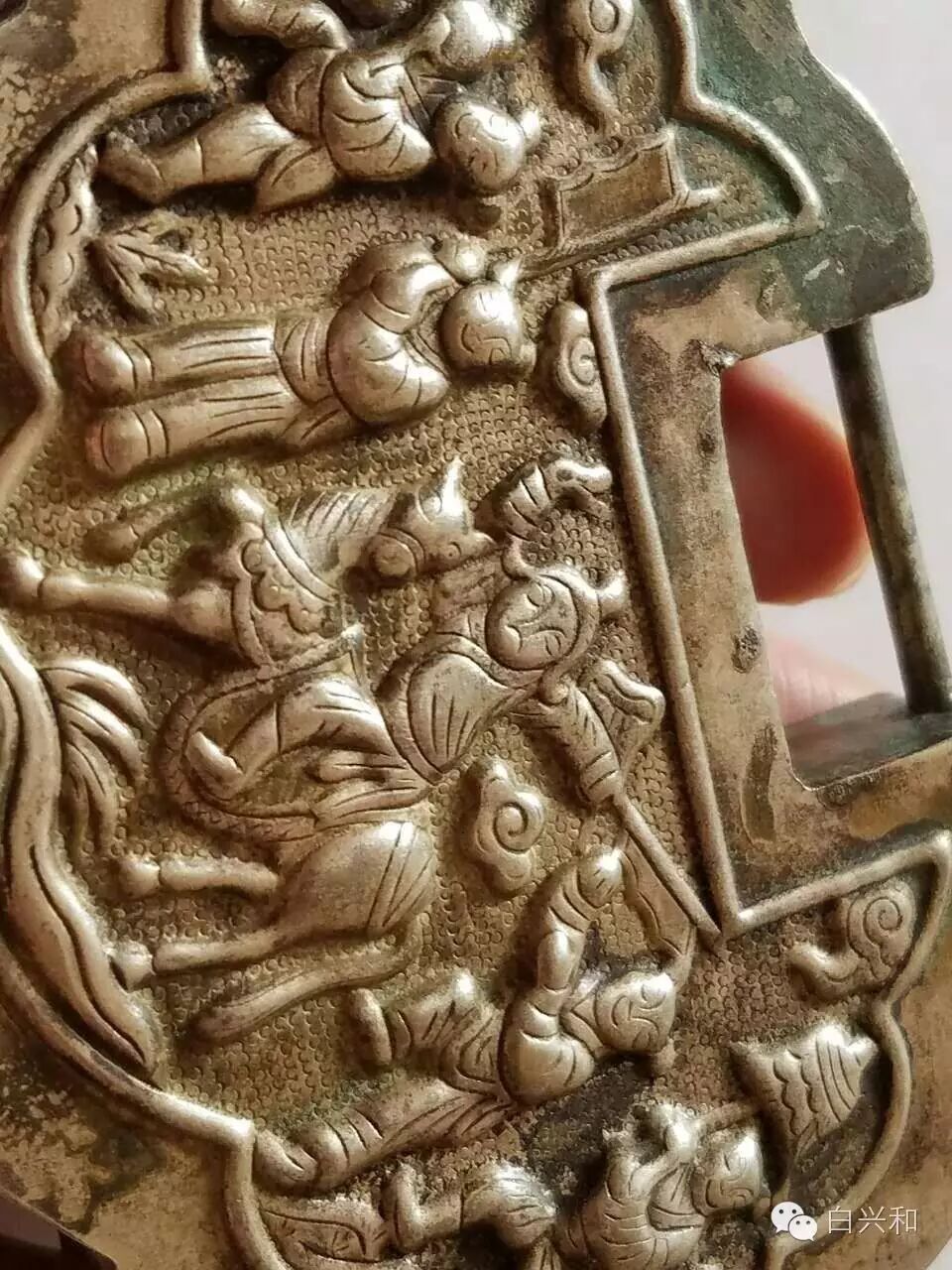 【序号】33-13号 【名称】三多九如人物故事银锁 【年代】清朝 【材质】银 【尺寸】长93,高68,厚11mm,重68.68克。 【描述】三多九如人物故事银锁,工艺精美大气,有“元祥”戳印,收藏自用都不错,品像如图,升值空间大,值得收藏的品种。包真,放心拍。 【起拍】无底价。 【估价】1500元以上。 【佣金】买卖双方各3%,卖家包邮。