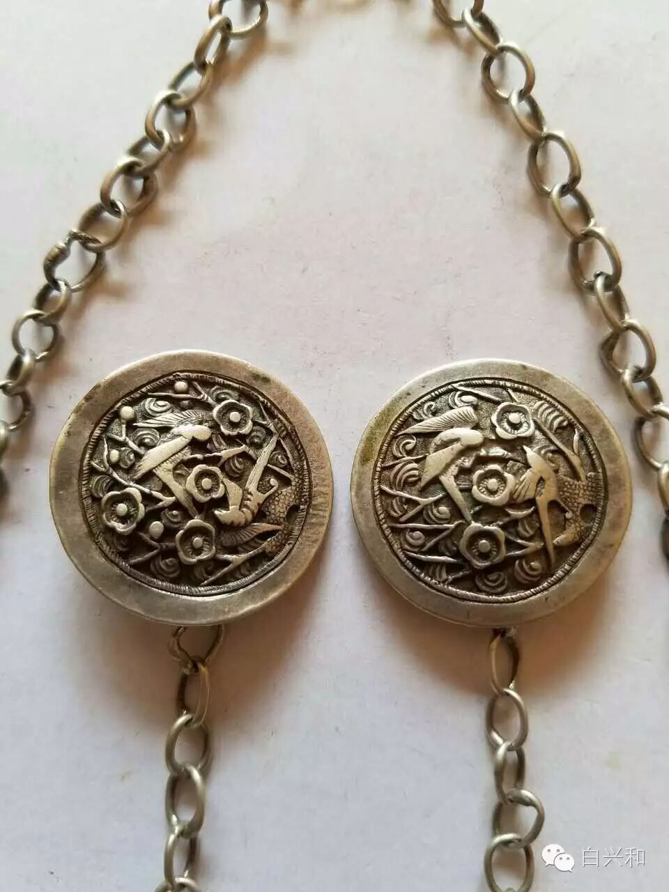 【序号】33-12号 【名称】银链一条 【年代】晚清民国 【材质】银 【尺寸】总长58厘米,重18.6克。 【描述】银链一条,扣子工艺精美,收藏自用都不错,品像如图,升值空间大,值得收藏的品种。包真,放心拍。 【起拍】无底价。 【估价】400元以上。 【佣金】买卖双方各3%,卖家包邮。