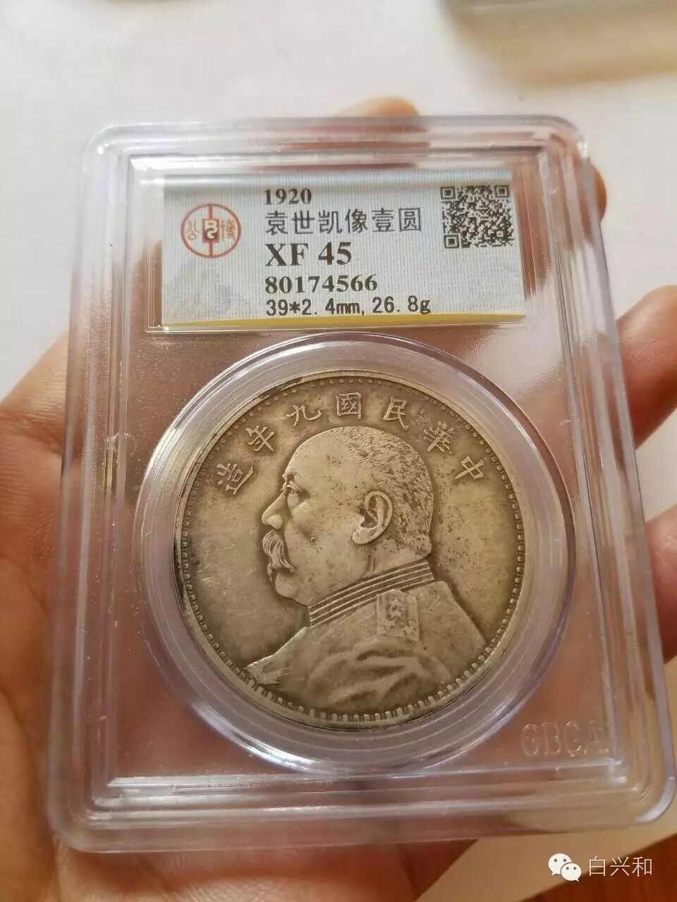 【序号】33-11号 【名称】袁大头九年评级币XF45 【年代】民国三年 【材质】银 【尺寸】见图。 【描述】九年袁大头评级币,原味包浆,铸造精美,品像如图,升值空间大,值得收藏的品种。包真,放心拍。 【起拍】无底价。 【估价】700元以上。 【佣金】买卖双方各3%,卖家包邮。