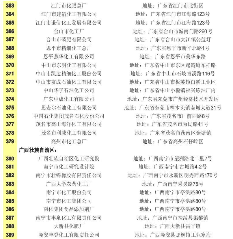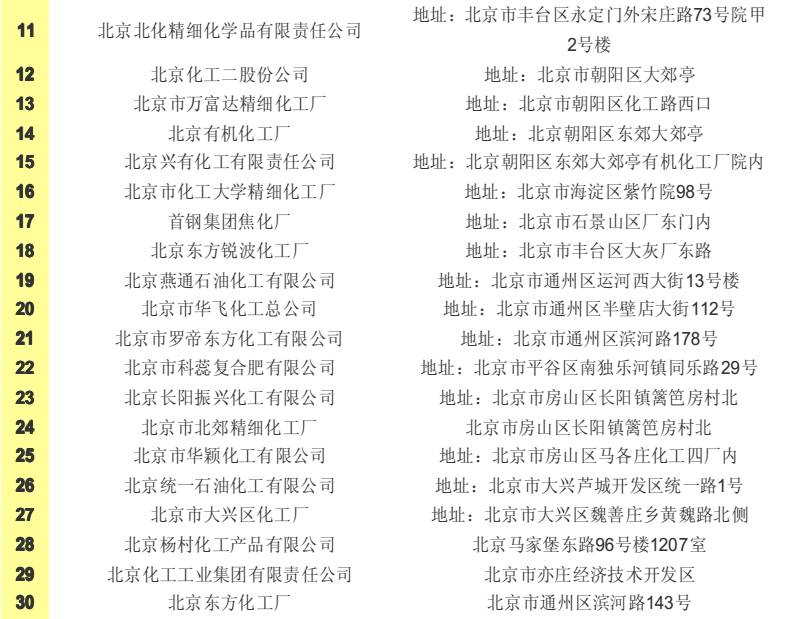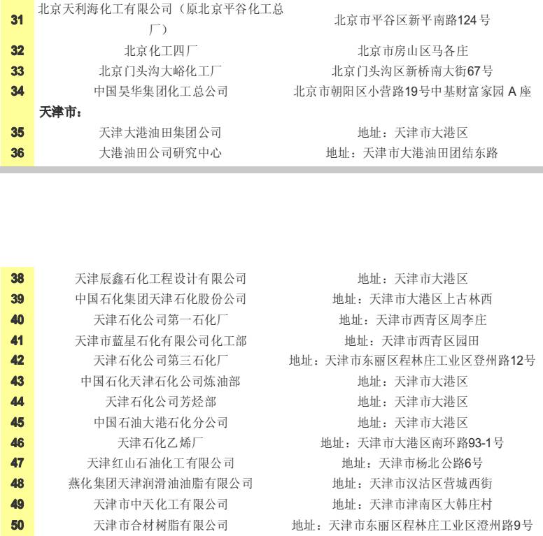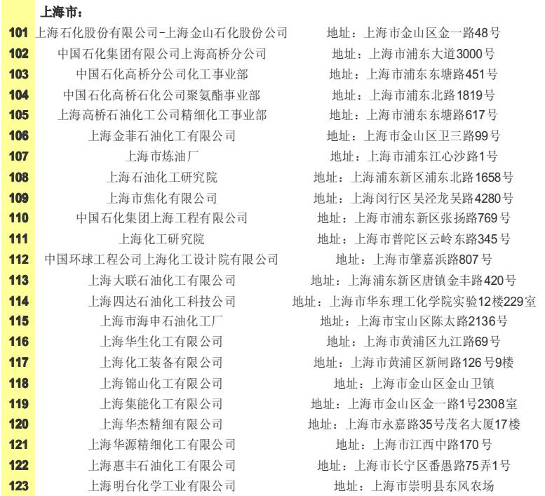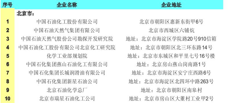 北京市、天津市、上海市、重庆市、安徽省、福建省、甘肃省、广东省、广西壮族自治区、贵州省、海南省、河北省、河南省、黑龙江省、湖北省的石化企业名录。由于篇幅原因,我们将全国名录分成两部分放送,敬请期待下周末的化工707推送!