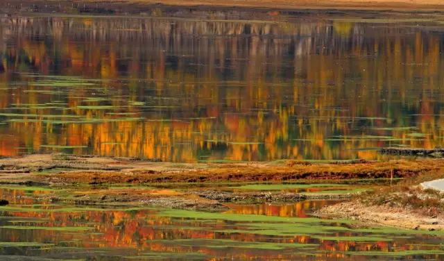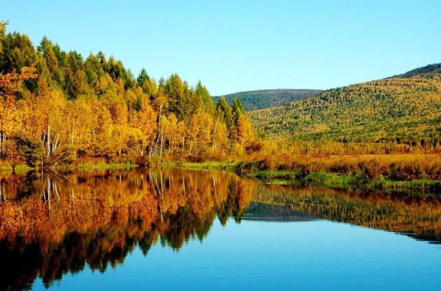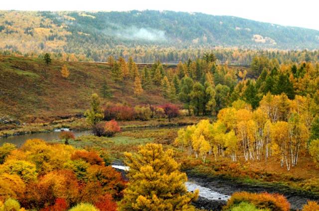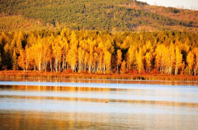 阿尔山的秋天来的很早,山林早就慢慢褪去青翠,换上的是绿中带黄,黄中夹杂着红的奇妙景色,就像上帝打翻了颜料盘,五彩斑斓。