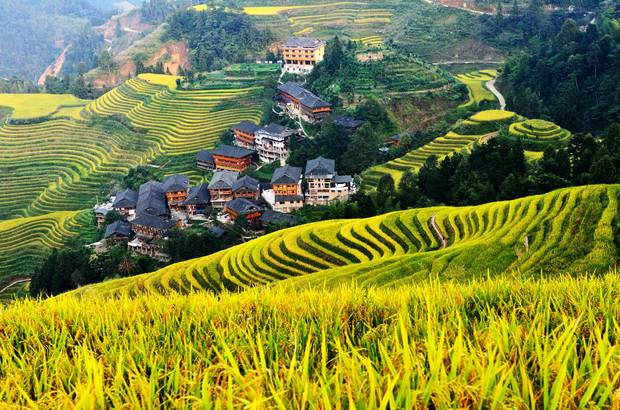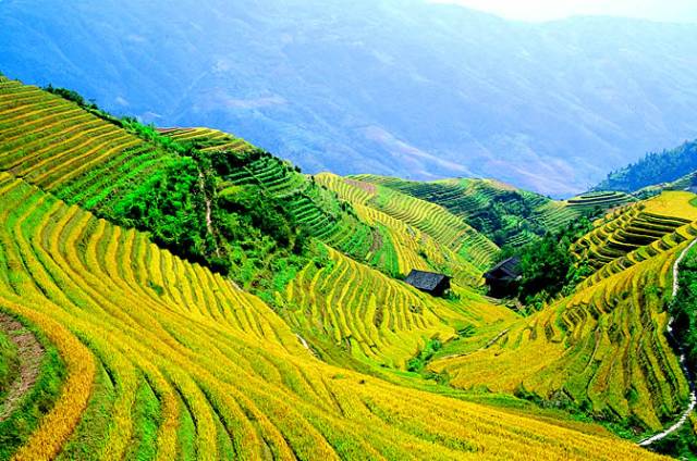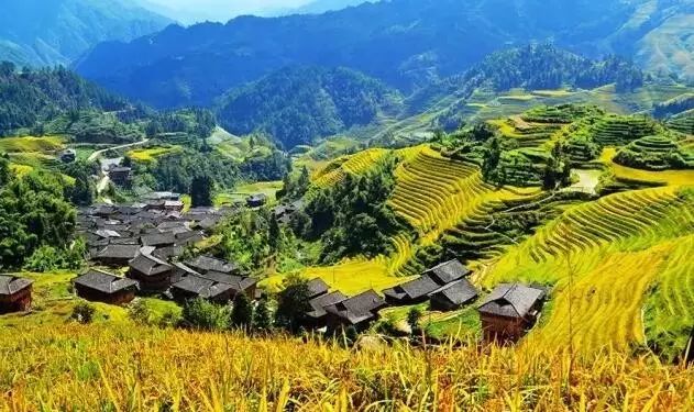 龙脊梯田依山而造,看起来如诗如画似的梯田,分布在海拔300-1100米之间,一层层从山脚盘绕到山顶。
