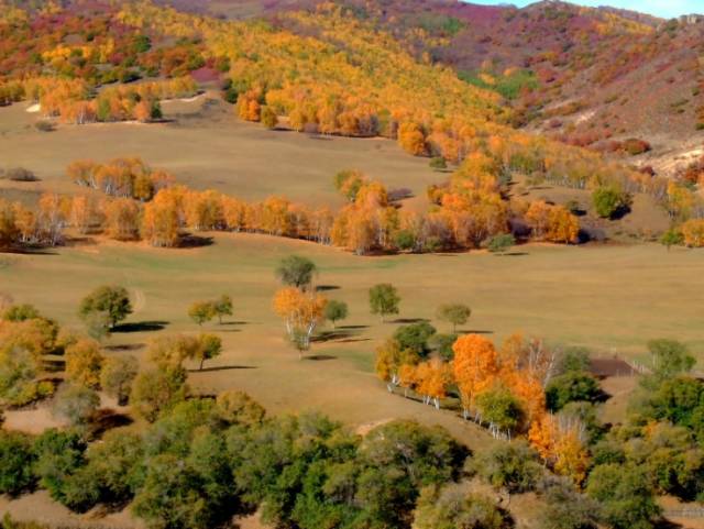 金秋时节,漫山红遍,层林尽染,姹紫嫣红,满眼风景。坝上高原,蓝天碧水,牛羊成群,万马奔腾,一派生机。
