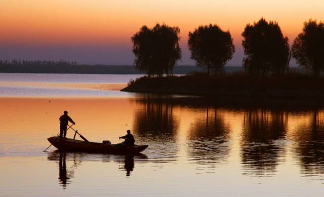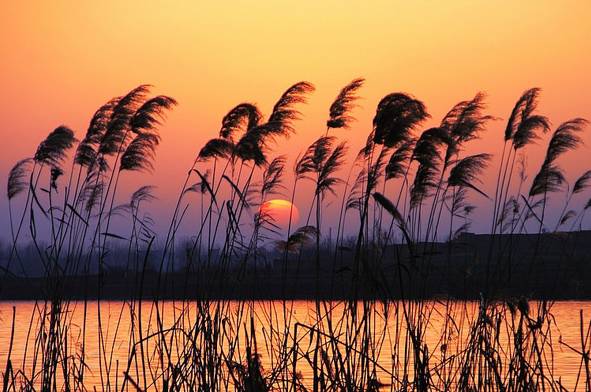 这时人们常常能看到,夕阳下,一只只载满芦苇的渔船返乡了。一天的疲劳也锁不住打苇人的歌喉。粗犷的渔歌、渔家号子此起彼伏,更映衬出人们劳动后的愉悦。