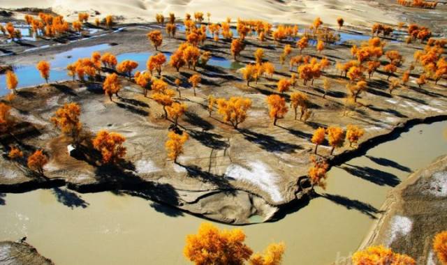 沙漠不只是有漫无边际的黄沙,胡杨给“死亡之海”的塔克拉玛干沙漠带来了生命的气息。