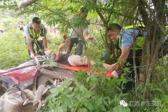 2016年5月12日,在天等县龙茗镇往东南村方向旧路发生一起两台摩托车发生碰撞,造成两人受伤的道路交通事故。伤势较重一方躺在灌木丛中痛苦地呻吟,无法动弹,天等交警第一时间赶到现场,几名交警钻进灌木丛中将伤员救出。