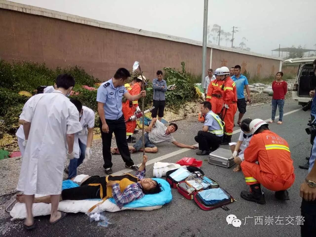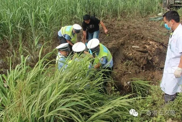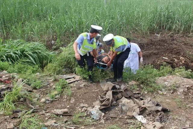 2016年7月6日上午7点50分许,在崇左市江州区国道322线发生一起货运车辆侧翻交通事故,崇左交警第一时间到达现联合医护人员迅速对受伤司机进行救援,几名交警跳进沟渠里合力将伤者抬到路边的救护车中。因抢救及时,农某的腰部伤情得到控制。