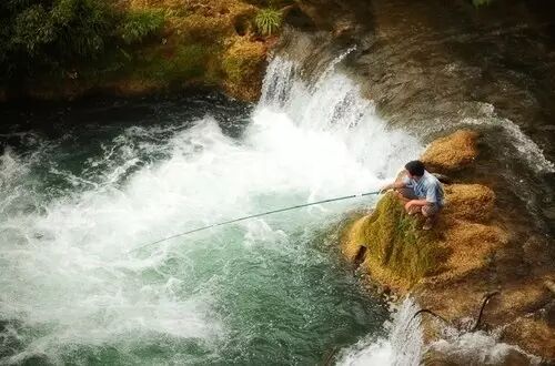 如果觉得泛舟河上过于悠然平静,可以到小七孔最美丽的河段———68级瀑布玩水。不到2公里的河道上面密布着68级跌水,如此众多而密集的瀑布和跌水实属全国罕见,几乎一步一泻,刺激万分。层层叠叠的瀑布沿着高高低低的河床倾泻而下,水花千姿百态,令人目不暇接。