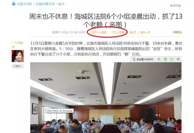 对当天的执行行动, 全程用图、文结合的形式进行直播报道,并邀请《南国早报》、《北海日报》、北海365网等媒体记者跟踪报道。随着报纸、网站、微博、微信等平台的信息发布,群众反响热烈。