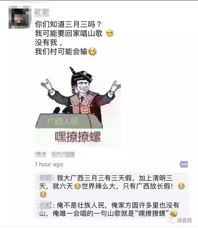 又是一年三月三,壮族山歌汇成海!我们横县的壮族网友也是不少呢~!网友们纷纷表示:我要回家唱山歌~嘿撩撩螺~