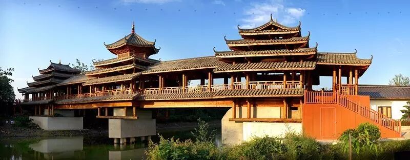 海湾旅游区为了弘扬中华民族的优秀文化,以海纳百川的胸怀,引进了这样一座百年风雨桥,取名为海湾“众福桥”。