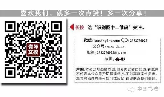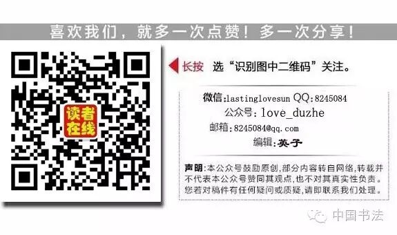 欢迎您加入“中国书法”平台,也欢迎您加入“青年文摘”微信公众号:qnwz_china 和“读者在线”微信公众号:love_duzhe平台。希望可以通过您的帮助加快平台的影响力,我们会努力的做好平台的服务工作,欢迎您提出宝贵意见。