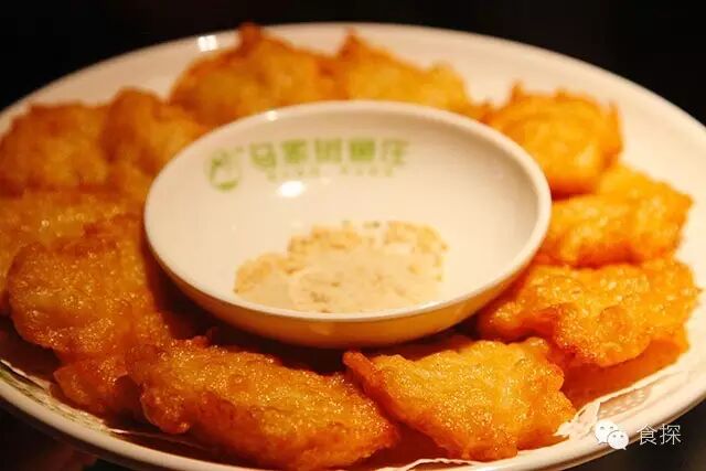 师傅每天手工拍打的墨鱼饼,是粤西地区的特色菜,用8成热的油温炸制金黄,蘸上调料干粉,入口Q弹,软糯,还能吃到墨鱼粒呢。