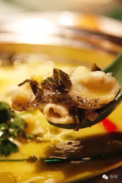 汤底用斑鱼头+鱼尾+鱼骨+中药一起熬成,不加一滴味精,完全吸收斑鱼的营养价值,喝的就是鲜甜。
