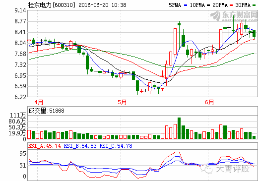 桂东电力600310点评:中线处于下降趋势,短期震荡整理,可能出现转势,近期走势弱于大盘和行业,注意风险,成交换手下降,延续弱势状态