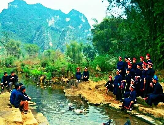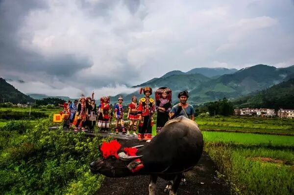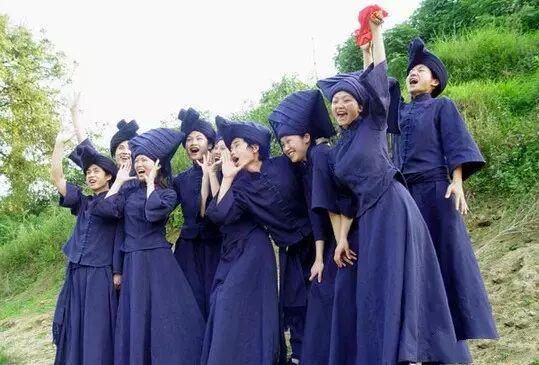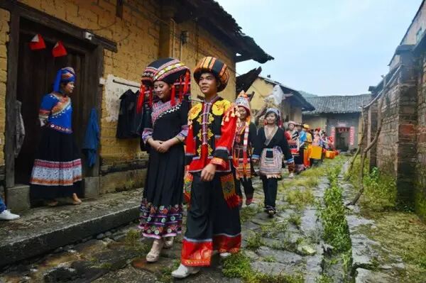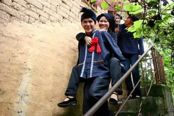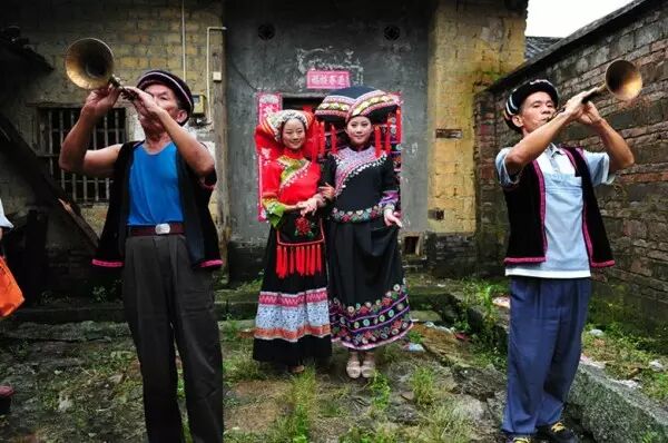 这是粤北壮族的婚俗,壮族姑娘的嫁前裳是黑色衣裤。即使姑娘平时不喜欢穿黑衣服,到了出嫁日也要穿上。送嫁的伴娘也同样穿黑色衣服。