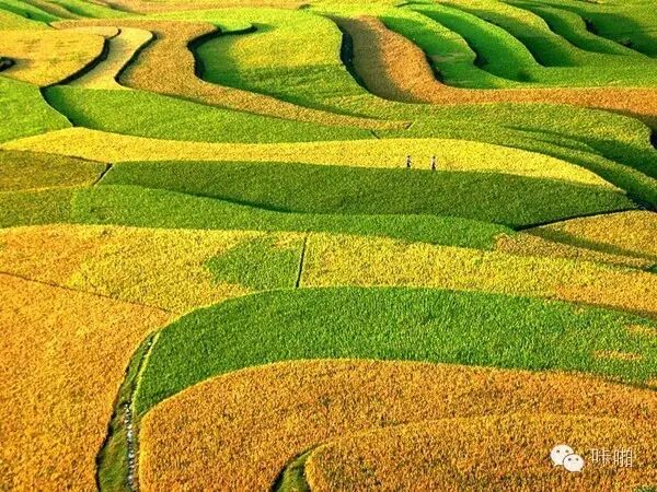 梯田的美就在于它千姿百态的造型,这点是平地上的耕田无法比拟的。就连田埂也随着地形的变化而有所不同,有的地方凸出来,有的地方凹进去,无论在线条还是在平面上都极其富于变化。