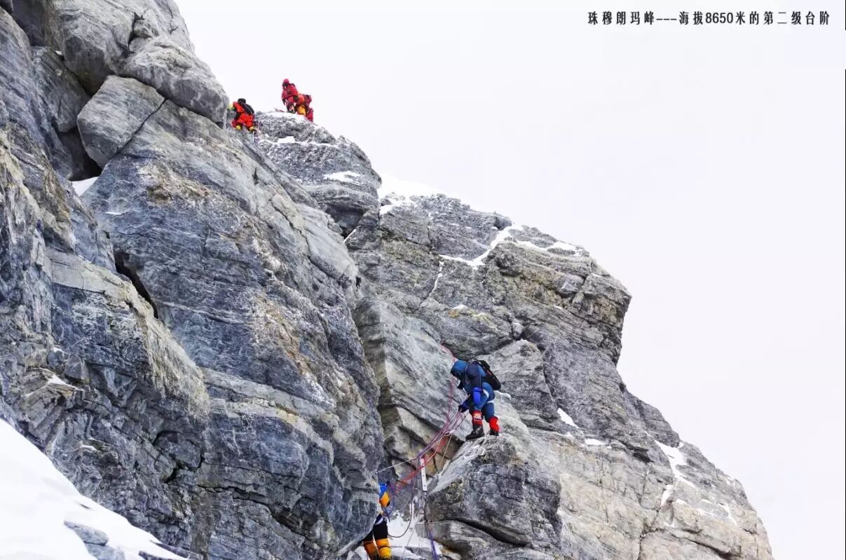另一道险关是接近峰顶的“第二台阶”。“第二台阶”位于海拔8650—8700米之间,那里全是岩石峭壁,其中多处峭壁有两三层楼那么高,攀登者只能借助事先建好的梯子爬上去。“这些岩石峭壁几乎都是垂直的,更要命的是山风非常大,稍有不慎就可能被吹落悬崖。”刘政说。