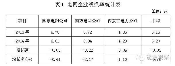 2015年,电网企业平均线损率为6.15%,同比下降0.76%。