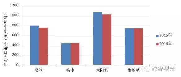 2015年,全国发电企业平均上网电价为388.25元/千千瓦时,同比下降2.61%。其中,太阳能发电最高,为1056.89元/千千瓦时,水力发电最低,为286.93元/千千瓦时。