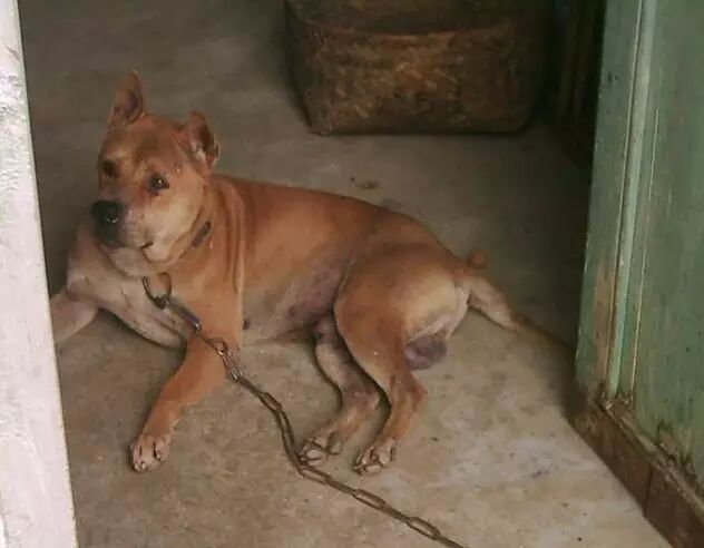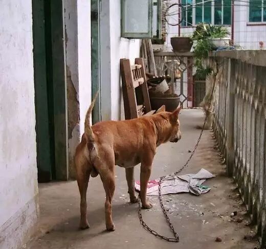 那狗名叫广西笔尾灰,是原来产于广西钦州的传统犬种,也就是说在几十年前它还叫广东笔尾灰(当时钦州是隶属广东的),这多难得。在当地曾长期作为猎犬和看护犬使用,是极优秀的赶山犬。现在已经沒有了狩猎这回事了,无所事事的昔日英雄,逐渐沦为肉用犬。用一句老话形容最理想的赶山犬标准就是:"头似葫芦耳似叉,尾似金枪腰一掐"!