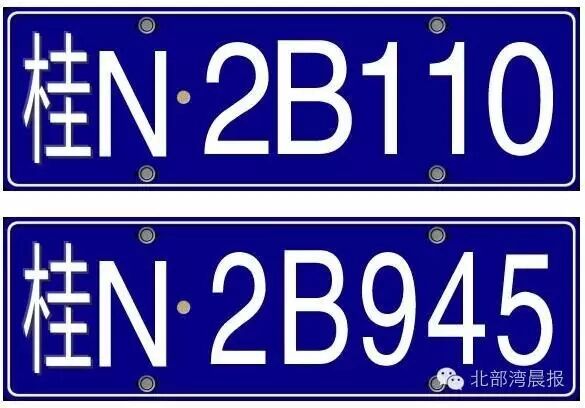 众所周知,车牌号由3个部分组成,第一部分是汉字,代表所在省份的简称;第二部分是英文字母,代表所在地的地市一级的代码;第三部分是5位序号码。钦州已投放的车牌号中,5位序号码都是全数字、第一位为字母、前两位为字母这几种,一直都没投放第二位是字母其他是数字的车牌。