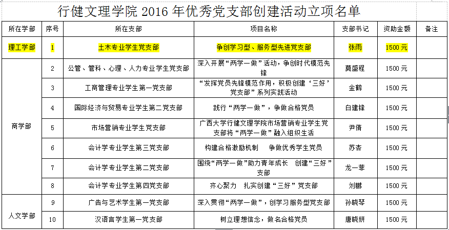 行健文理学院2016年优秀党支部创建活动