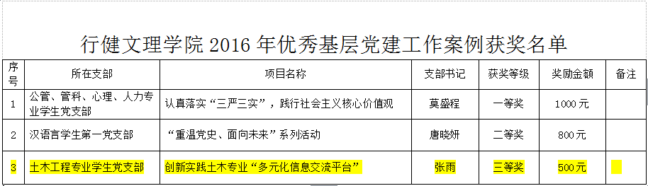 行健文理学院2016年优秀基层党建工作案例三等奖