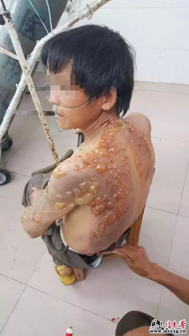▲屋主火灾中烧伤,背部大面积烧伤,一大片水泡触目惊心……