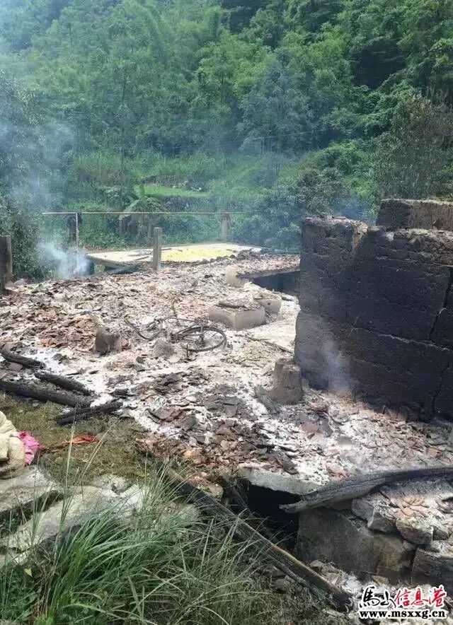 8月19日凌晨3点左右,金钗镇加雅村加广屯一村民木瓦结构房子起火,火灾造成房子、家中粮食及生活用品全部被烧毁,4头牛被烧死,现场一片废墟。屋主在火灾中被烧伤,已经送到医院治疗,暂无生命危险;所幸与其同住养女火灾中未受伤,已经安排到亲戚家。