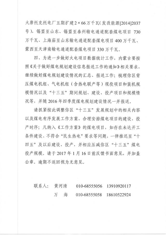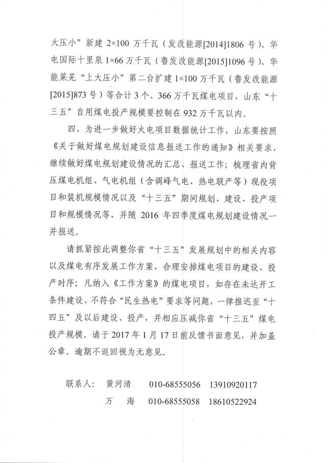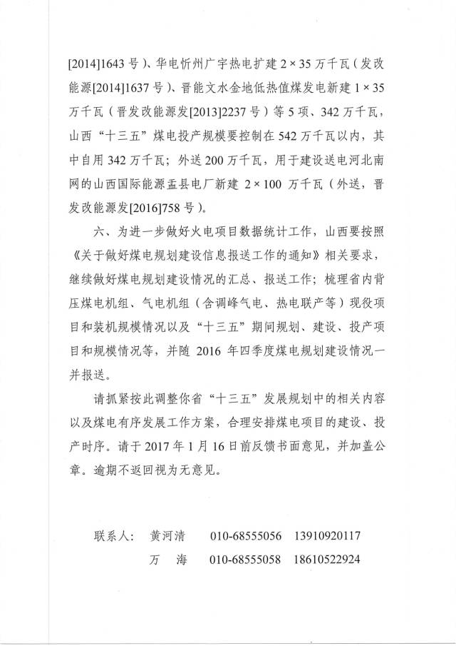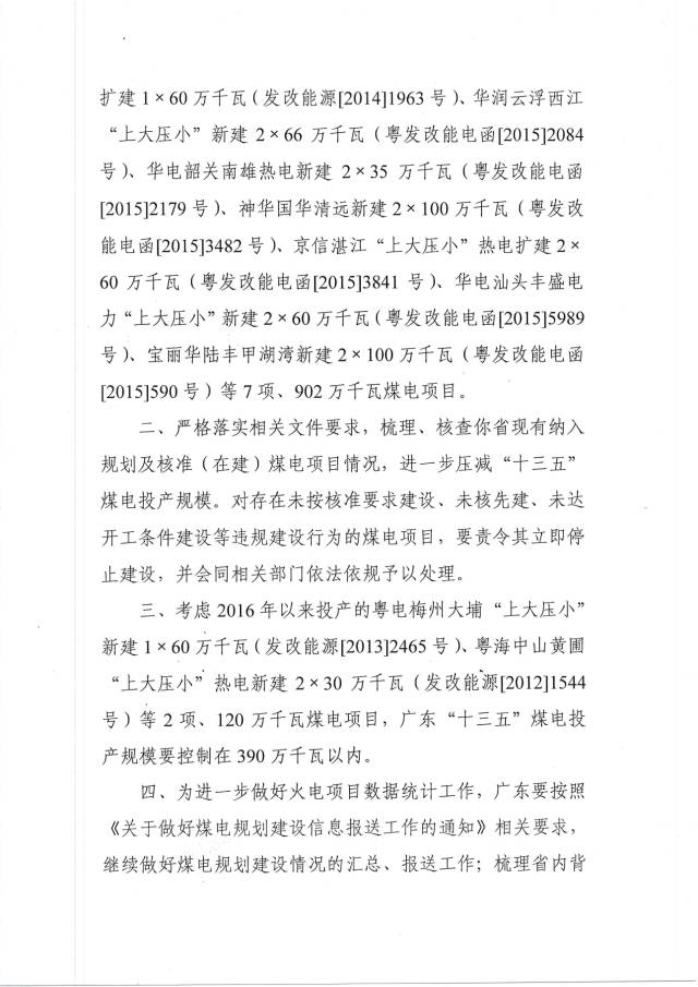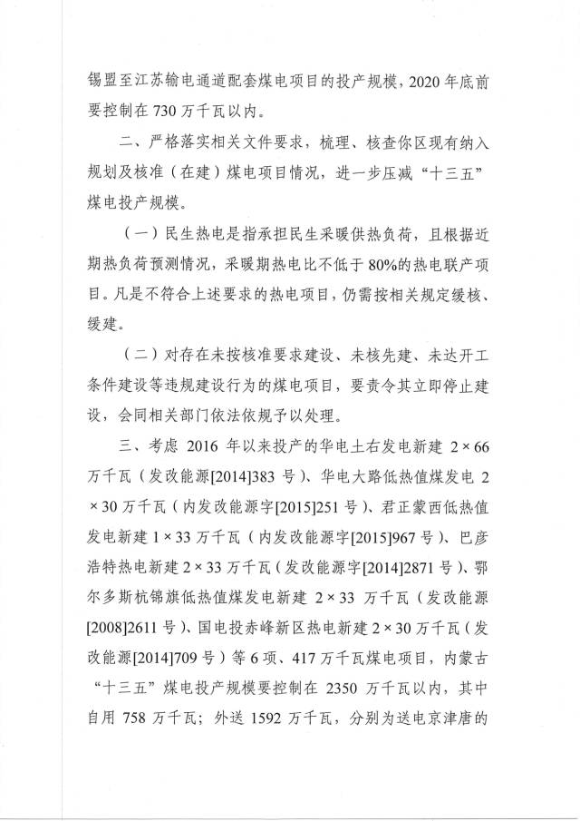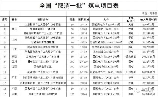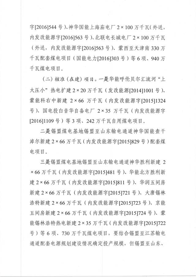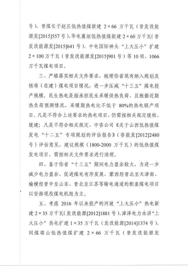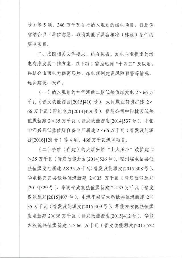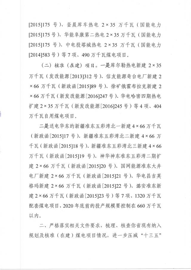 注:山西省另“取消”5项、346万千瓦自行纳入规划的煤电项目。新疆省送电华东的7项、1320万千万配套煤电项目,2020年前的投产规模要控制在660万千瓦以内。