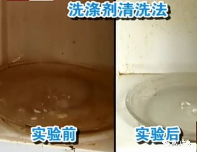 1号洗涤剂清洗后,表面黄色油污虽然没有了,但是还留下了黑色的污垢。