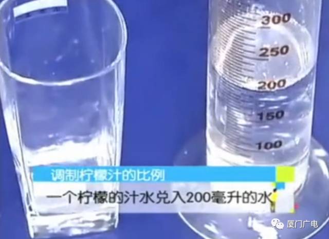 在1个柠檬的汁水,加入200ml清水,搅匀;提醒大家一点,在用柠檬汁清洗微波炉时,柠檬汁不能太少,否则可能起不到清洁的作用。