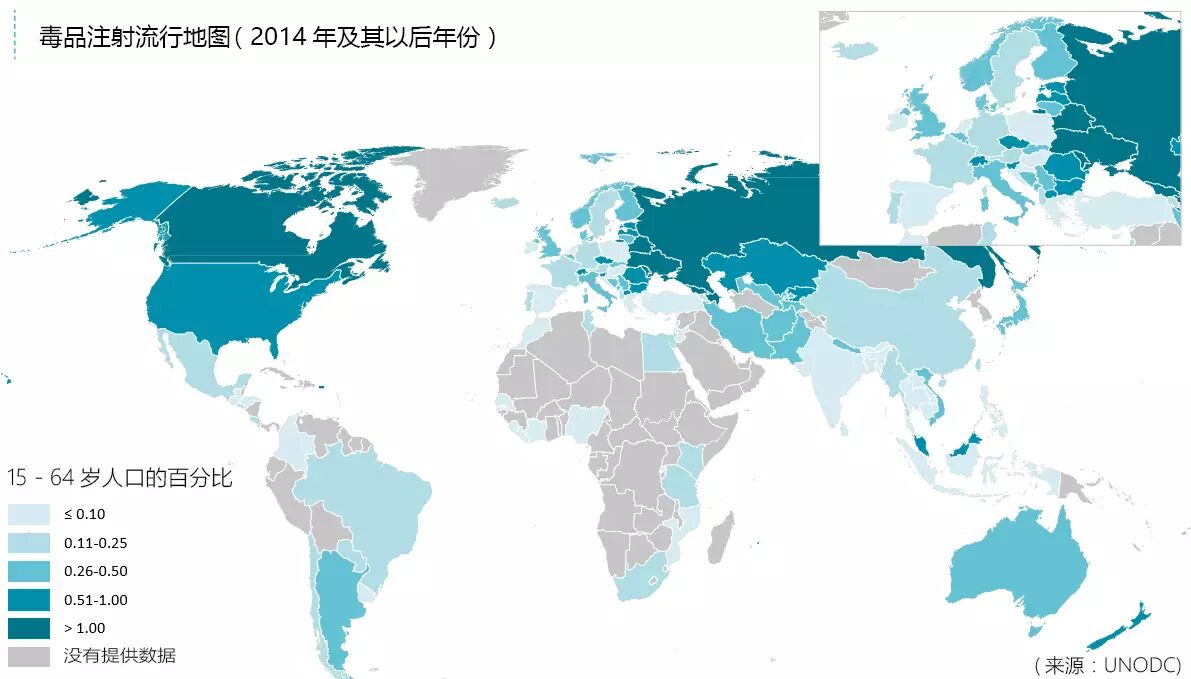 注射毒品是一种危害极大的吸毒方式,会成为很多疾病的传播媒介,。不幸的是,这件事情正在全球各大洲漫延,尤以北美、欧洲和东南亚部分地区最为严重。