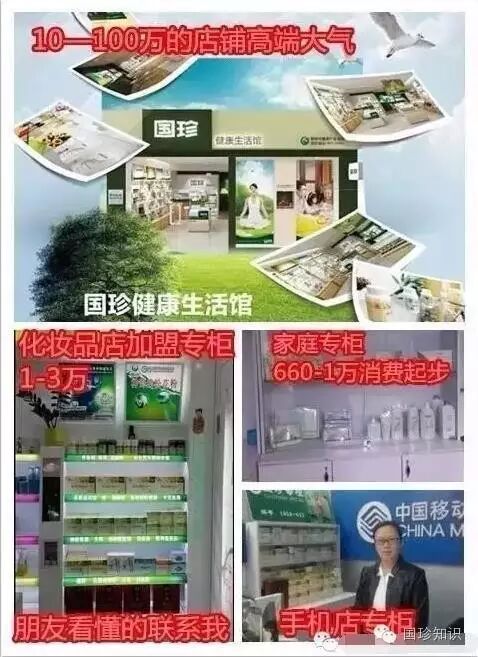 2、开家庭或者店铺网点,投资大概3万-6万不等,在家里或者已有的店铺里增设一个国珍专柜,针对人脉、资源、资金一般的创业伙伴