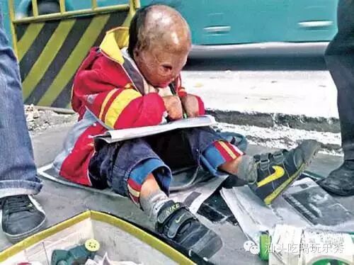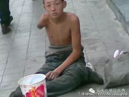 更令人发指的是,他们中有的被贩卖给了职业乞讨团伙,被人为的扭断腿脚,浇上硫酸,药成哑巴,整日被迫上街乞讨挣钱。