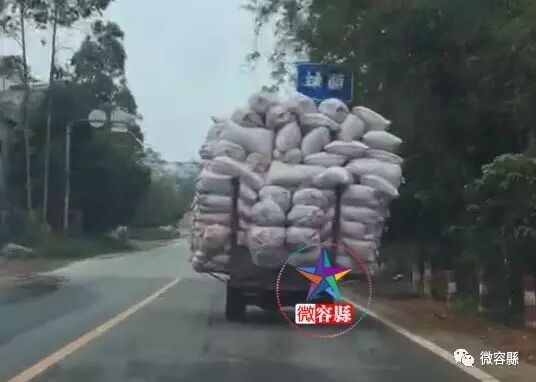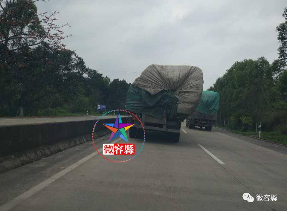 峤北村路段又见超高超载的货车,歪歪扭扭的篷布盖着的货物装在车上,存在很大的安全隐患,这样子让跟在后面的车看到也都心惊胆战的。