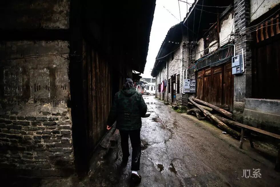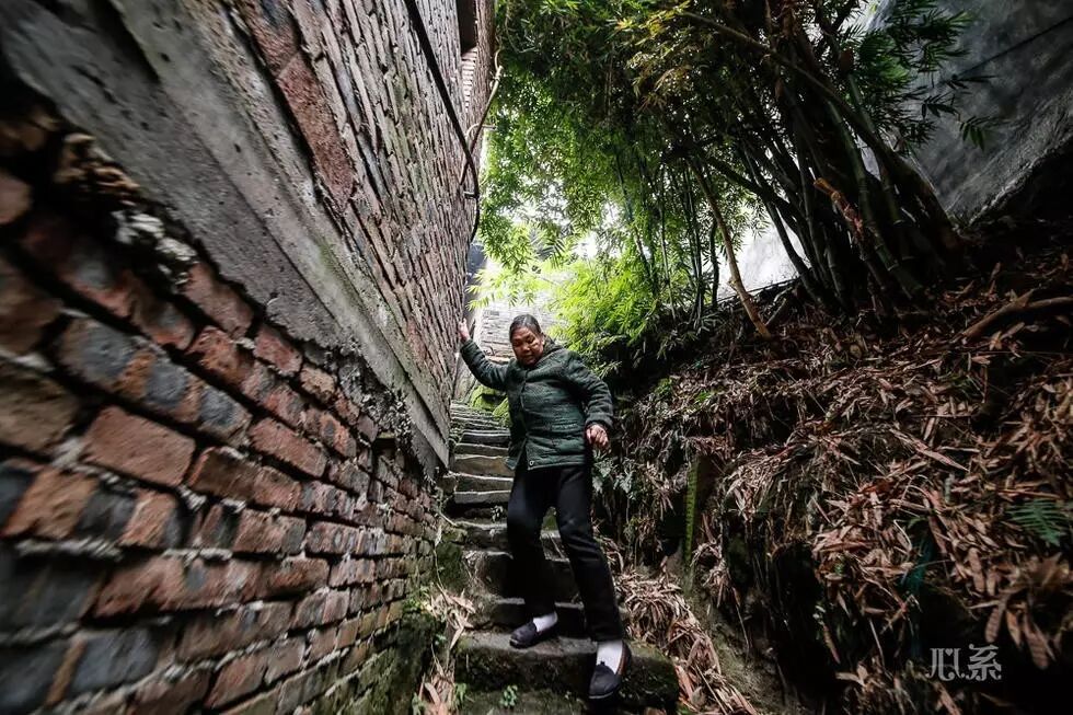 冬日潮湿的石板梯坎,长满绿色的苔藓,连正常人走路都要小心翼翼,廖芝兰一步一步摸着石头墙下台阶。