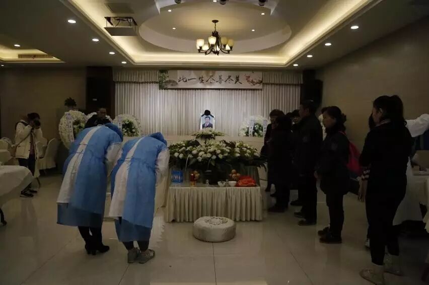 (重庆市红十字爱尔眼库的工作人员向角膜捐献者鞠躬)