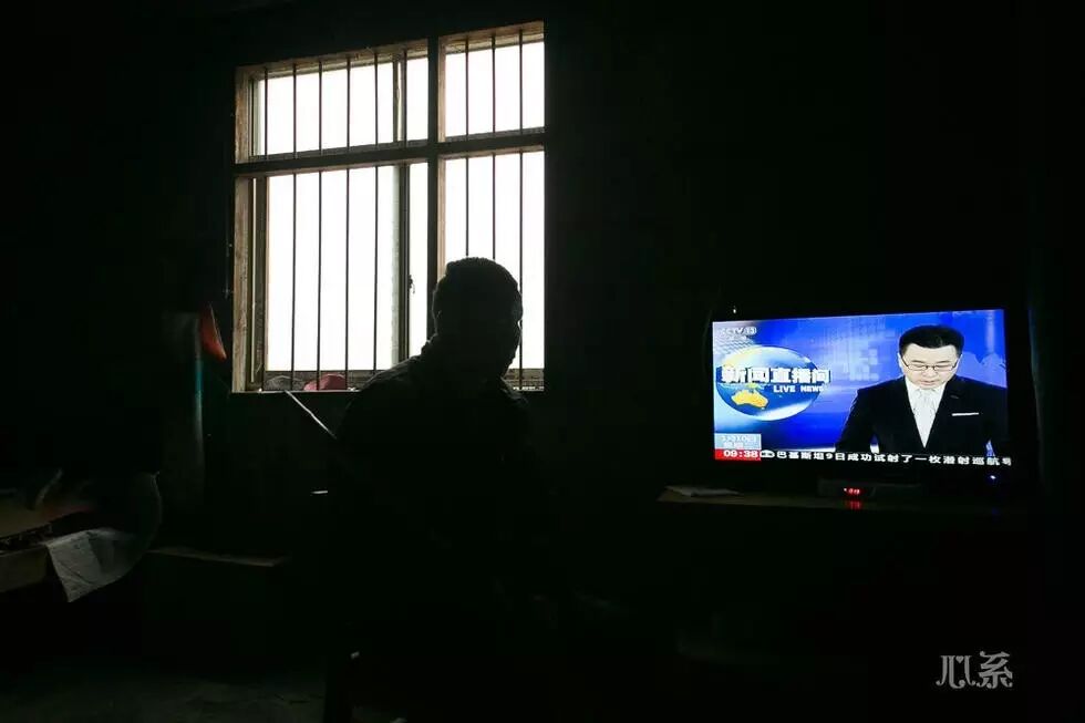 (何可春喜欢“看”新闻,由于现在已经没法看,只能坐在电视机旁边听了)