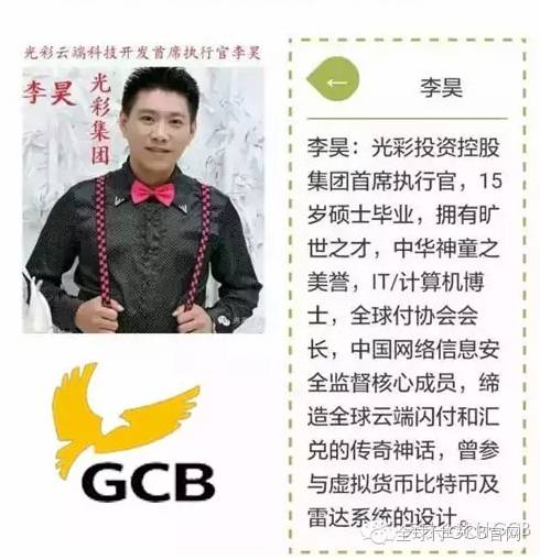 李昊,光彩事业董事局联席主席。李昊,89级,中国科学技术大学少年班,15岁取得硕士学位,是我国至今为止获取硕士学位最小年龄的天才,据有旷世奇才,中华神童之美誉,计算机系无线传输系博士,经济学博士导师,互联网信息安全与防护开发专家,擅长整体解决方案及技术体系架构的构建。