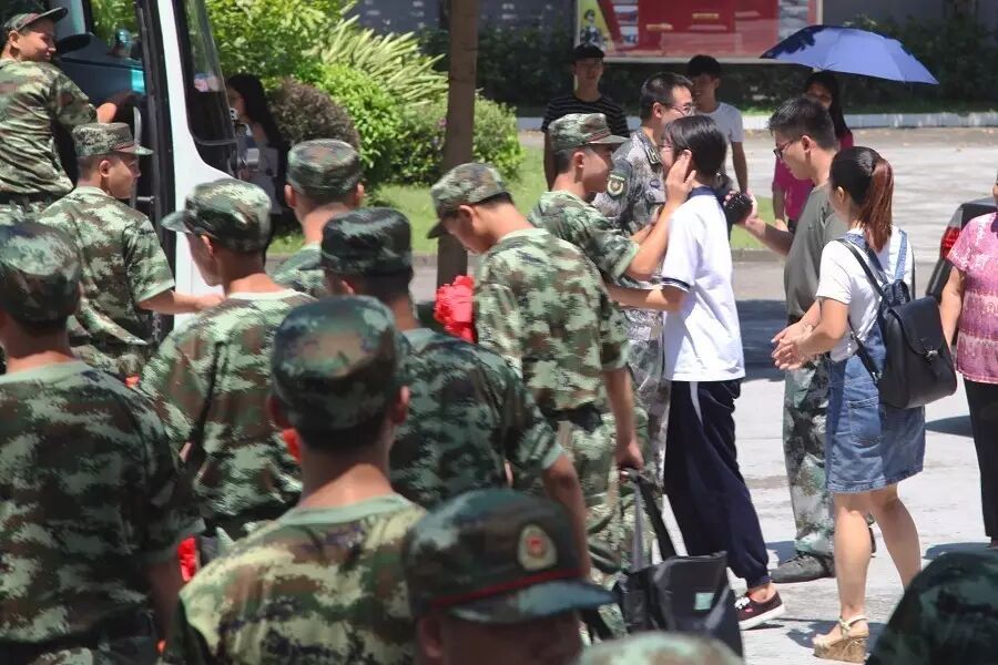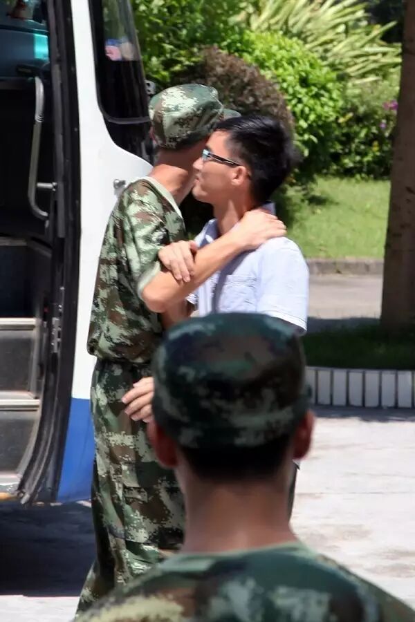 新兵即将上车,但大家都依依不舍