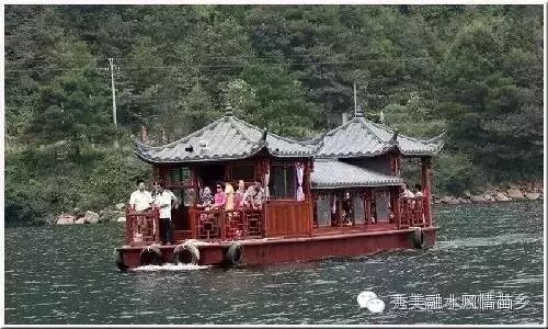 盘龙湖是荣地电站水库储水而成,俗称十里长圹。游船穿梭其中,湖边峰峦叠嶂,湖里波光粼闪,两岸杉竹翠映,迎面清风徐来,极目山花鲜艳,约15分钟的水上游览好不惬意。