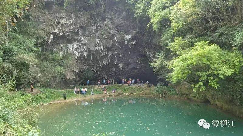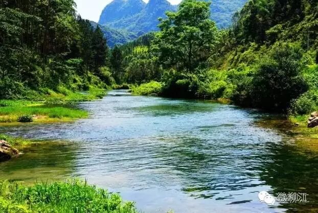 土博镇水源河是红水河的源头之一。水源河流域河水湛蓝,两岸绿树翠竹交错,因其自然风光优美,有“柳版九寨沟”的美誉。水源河纳社段全程1500多米,河流顺势穿越岩洞,常年流水潺潺,别有洞天,这是整个“柳版九寨沟”的精华部分。