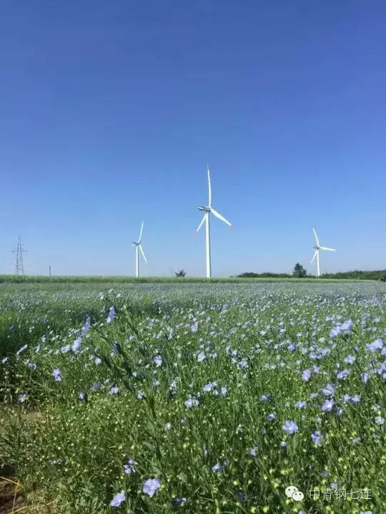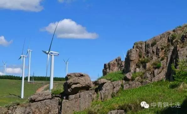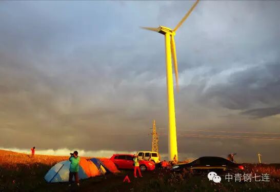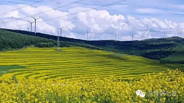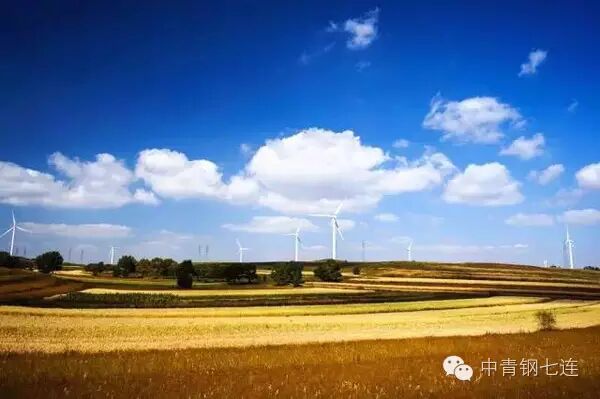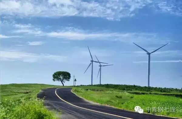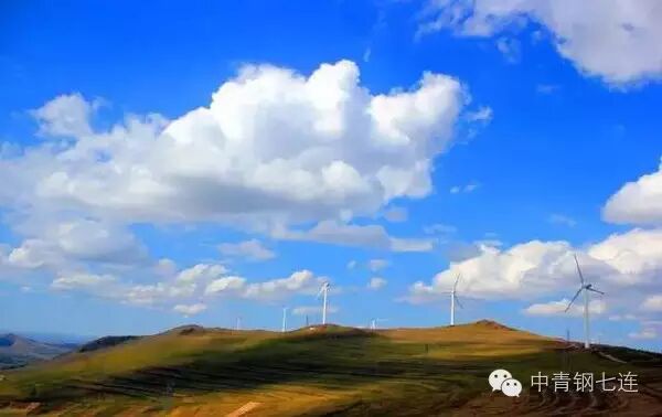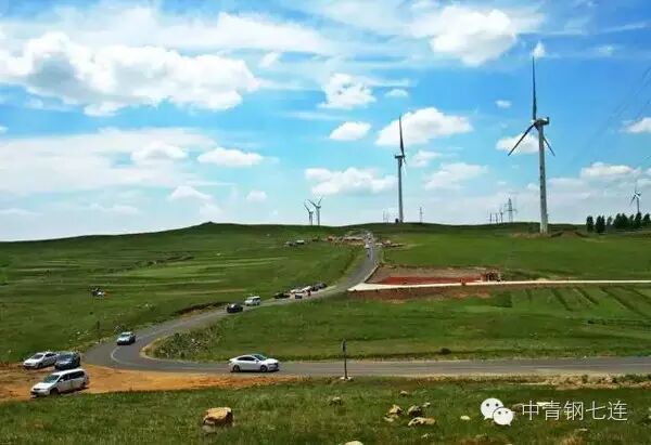 风力发电机,俗称风车,一座座高高耸立沿着天路蔓延开来,占满了人整个视线。白色的风车、蓝天白云,还有绿色草原相得益彰,构成天路最经典的风景之一。