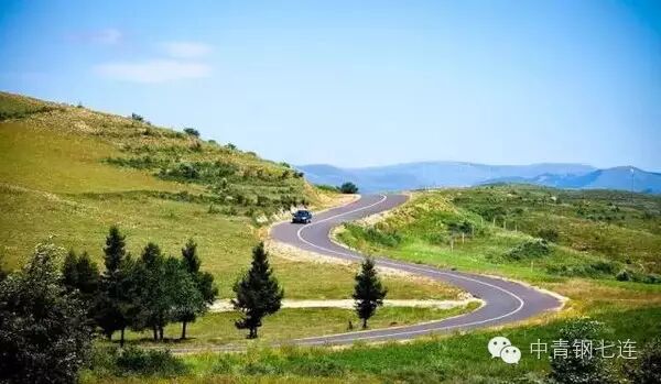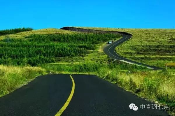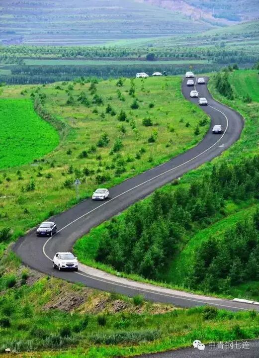 夏季 草原天路绿意茂密,蓝天如洗,行驶在草原天路上,百里之间,左右徘徊曲折,剧烈地跌宕起伏,静谧深远,仿佛通向梦的彼岸。
