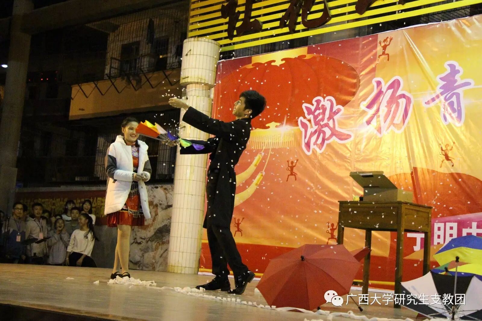 wuli广西大学研究生支教团的伙伴们进行了一番精心的策划准备,组织了宁明中学师生进行节目的编排和晚会的布置。支教团中多才多艺的小伙伴们也为同学们献上了一系列精彩的节目.