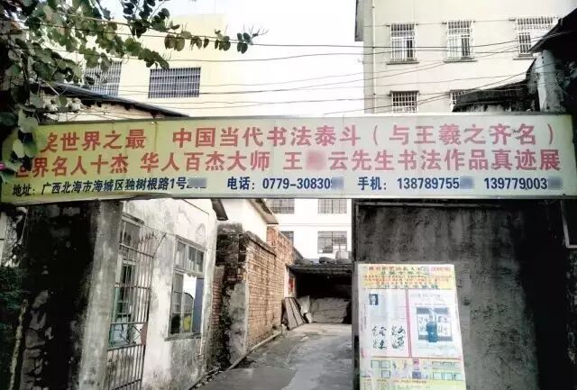 收藏周刊:我在网上看到一张照片,大概内容写着“中国当代书法泰斗(与王羲之齐名)王某云先生书法作品真迹展”。