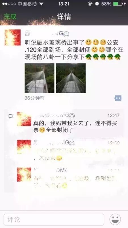 景区方面也发出了玻璃桥临时关闭的紧急通知